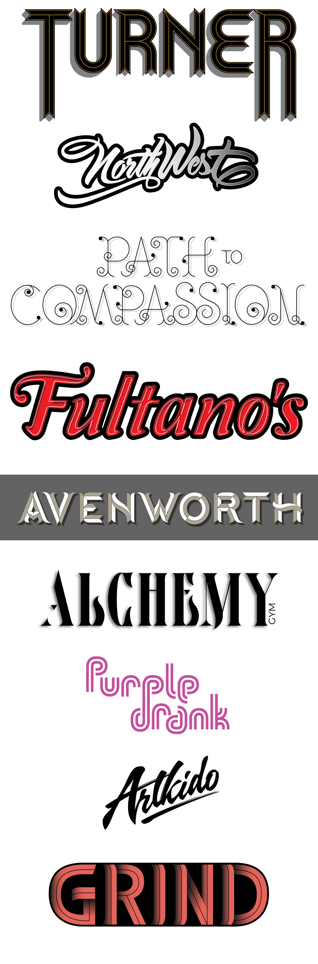 Collection of typography with various styles. Some were hand sketched and then digitalized.